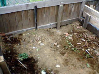1/28に作った廃材利用の手作り堆肥升。生ゴミを入れ堆肥をつくる。捨てたキャベツの芯から芽が!