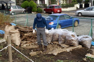 焼き芋用の炉と燃やす落ち葉・枯れ枝は準備万端