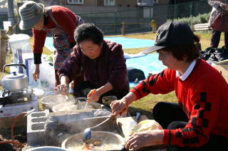 | 今回の芋煮は豚汁風で具だくさん | おいしくあったかくいただきました |