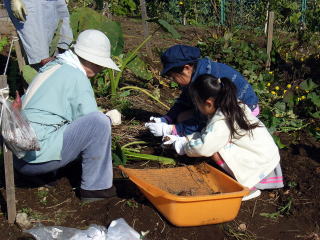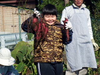 | 里芋はどこからが芋でどこからが茎か? | 大きなさつまいもを掘り出し大満足 |