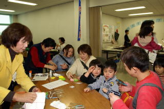 | におい袋づくりは、子どもたちに大人気 | 教わる子どもたちも楽しくかつ真剣 |