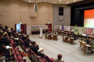 | 旭公会堂が開催されたフォーラム会場風景。 上のステージは使わず交流しやすい配置だ。 |