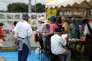 | エコケーキとハーブティも恒例で人気です。 | パネル展示も恒例になっています。 |