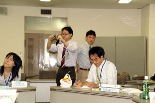 市の担当の吉原さん(左)、肥山さん(右)も応援に