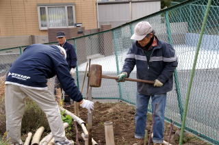 この日の主な作業は壊れた竹垣の修繕です