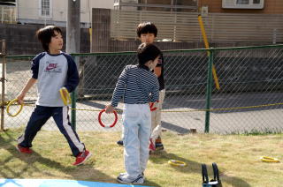 芝生でやる輪投げは楽しい