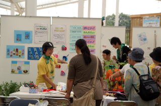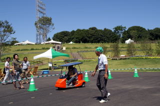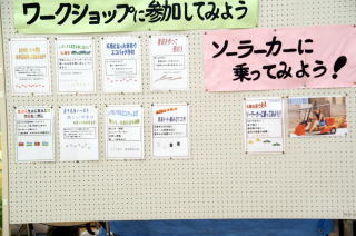 | 「ひでじいの飛ばせ竹とんぼ」は共同出展 | 「水の広場」では、ソーラーバッテリーカー試乗会 |