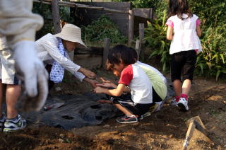 中沢小放課後キッズクラブによる落花生収穫・大根の種まき