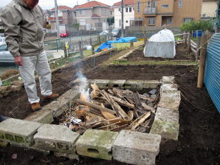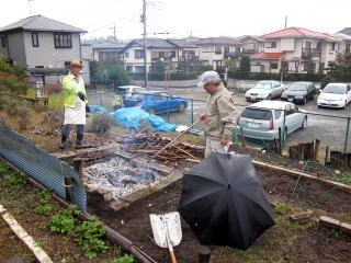 明日の収穫祭焼き芋用に灰をつくります