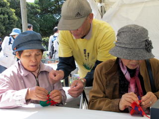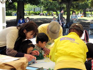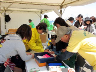 招聘され本部テントでワークショップ