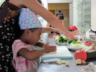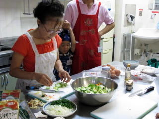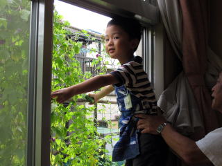 緑のカーテンでできたゴーヤを使って親子エコカレー教室