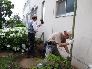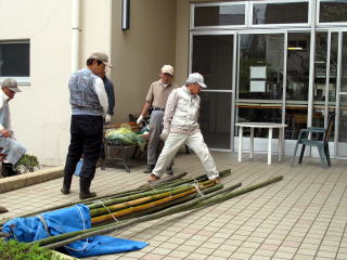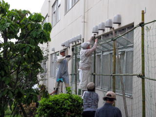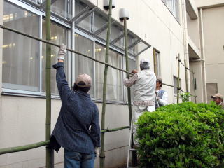 今宿地区センター 緑のカーテン 支柱&ネットかけ替え