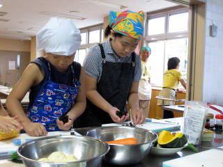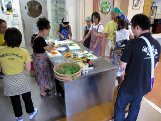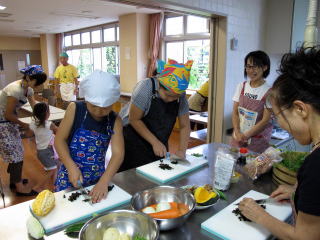 緑のカーテンのゴーヤを収穫し 親子ゴーヤカレー料理教室