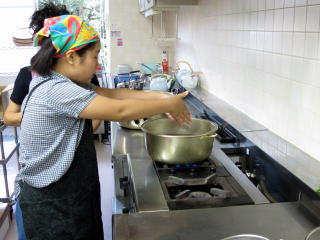 ただいま盛りつけ中は講師の長野さん。