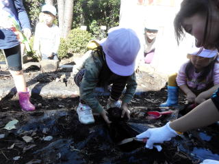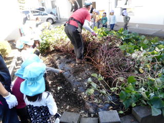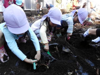 鶴ヶ峰保育園でサツマイモ堀りとつるリースづくり