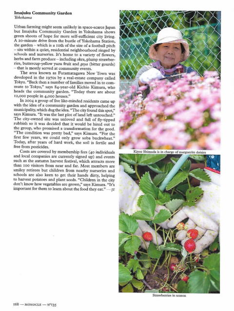 記事としては、巻末16ページの世界のコミュニティガーデン特集(正確には“Meets the gardeners”?)で、