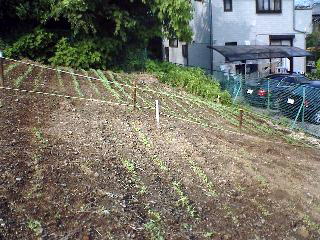 まだ、蒔いて4日後だが、後から蒔いた手前側のそばも、無事芽を出し始めた。