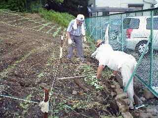 掘り起こしたところも、どんどん雑草が生えてくる。いたちごっこだが、ユンボ導入後は抜くのもラクだ。