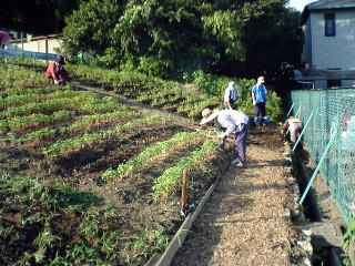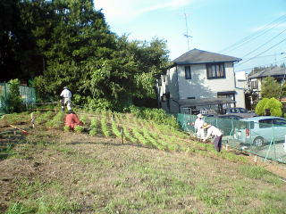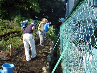 | ●9月6日 入口正面通路の整備。 平らな坂道にするのは結構大変だ。 |