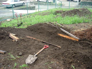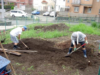●9月6日 やっと少し平らになってきた。 道具をほっぽらかしてちょっと休憩中。 |